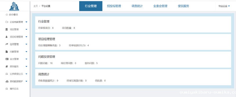 • 实现对物业企业、项目信息、业委会、培训考核、招投标及保证金管理等物业服务的全程监管